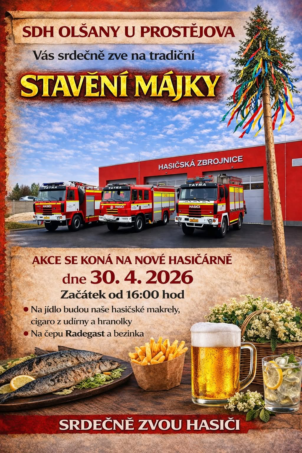 Stavění májky v Olšanech u Prostějova 2026