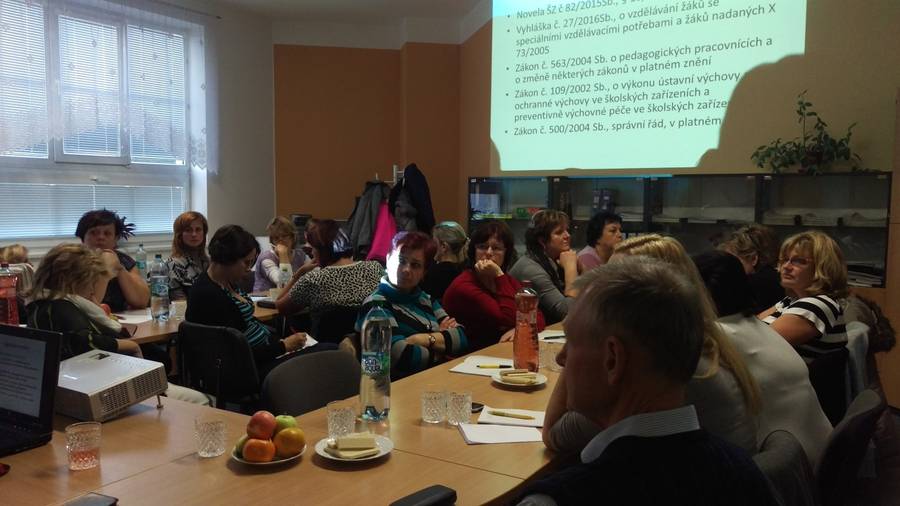 Seminář se konal 07. 11. 2016. Lektorka PaedDr. Iva Tomášková představila přítomným pojem inkluze, principy společného vzdělávání, novelu školského zákona č. 82 / 2015 Sb. a další.