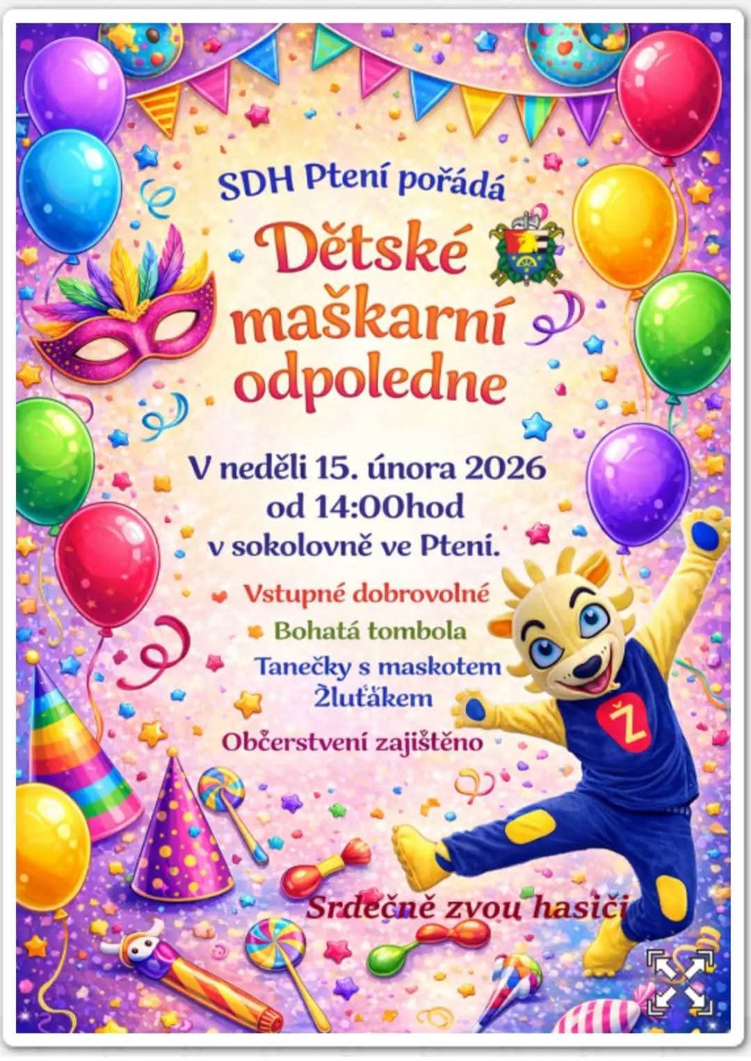 Dětský maškarní ples ve Ptení 2026