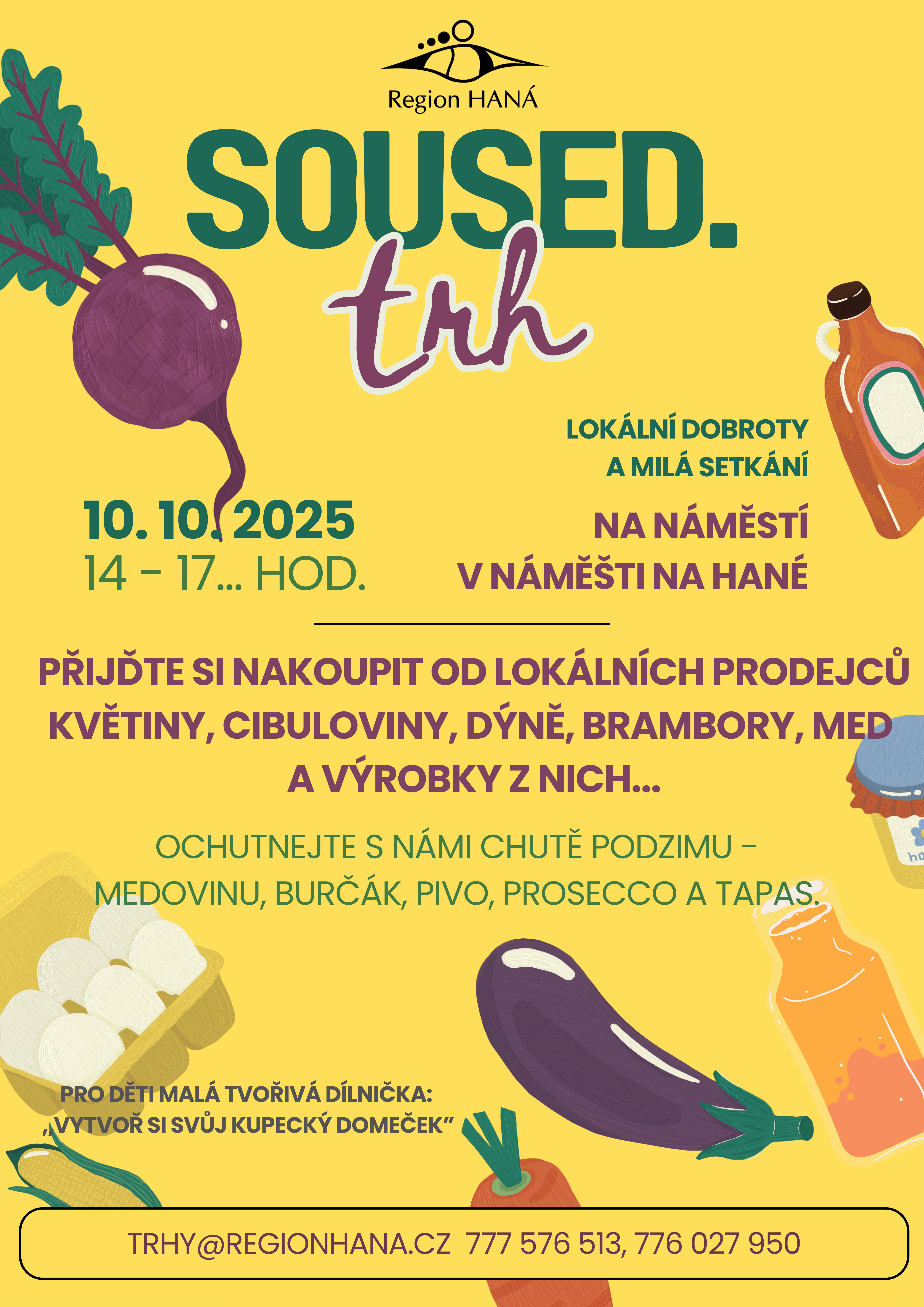 Pokud si nás přejete kontaktovat: trhy@regionhana.cz nebo tel. 777 576 513, 776 027 950.