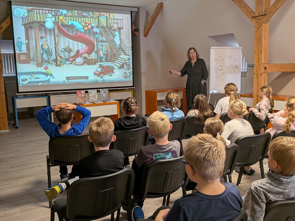 Autorku slavného komiksového dua Anču a Pepíka, spisovatelku a výtvarnici Lucii Lomovou, jsme přivítali ve čtvrtek a pátek ve Městské knihovně v Prostějově i v jejím dětském oddělení. Pro žáky ZŠ a MŠ Kollárova Prostějov, ZŠ a MŠ Určice, ZŠ Vrbátky, ZŠ E. Valenty, ZŠ Dr. Horáka a RG a ZŠ Otto Wichterleho Prostějov si připravila skvělou besedu. Povídání bylo pestré, zábavné a plné zajímavostí 💬 – žáci se zapojovali a společně objevovali svět komiksu. Na chvíli se také proměnili v malé tvůrce: sestavovali vlastní komiks, který mohli pojmenovat a nakonec si ho odnést domů. Z akce všichni odcházeli s úsměvem a spoustou inspirace !