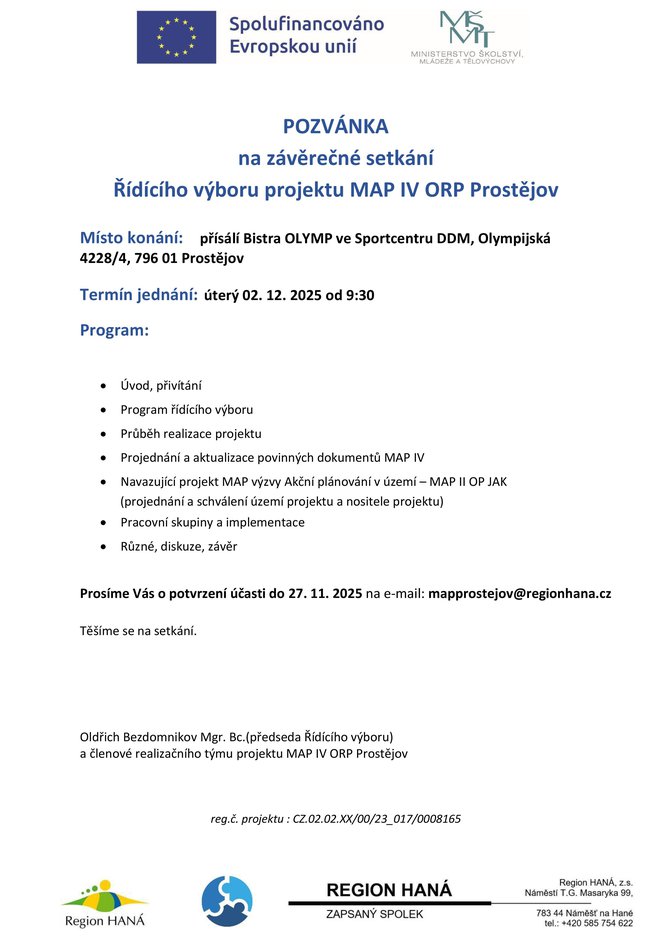 - Setkání Řídícího výboru MAP IV ORP Prostějov